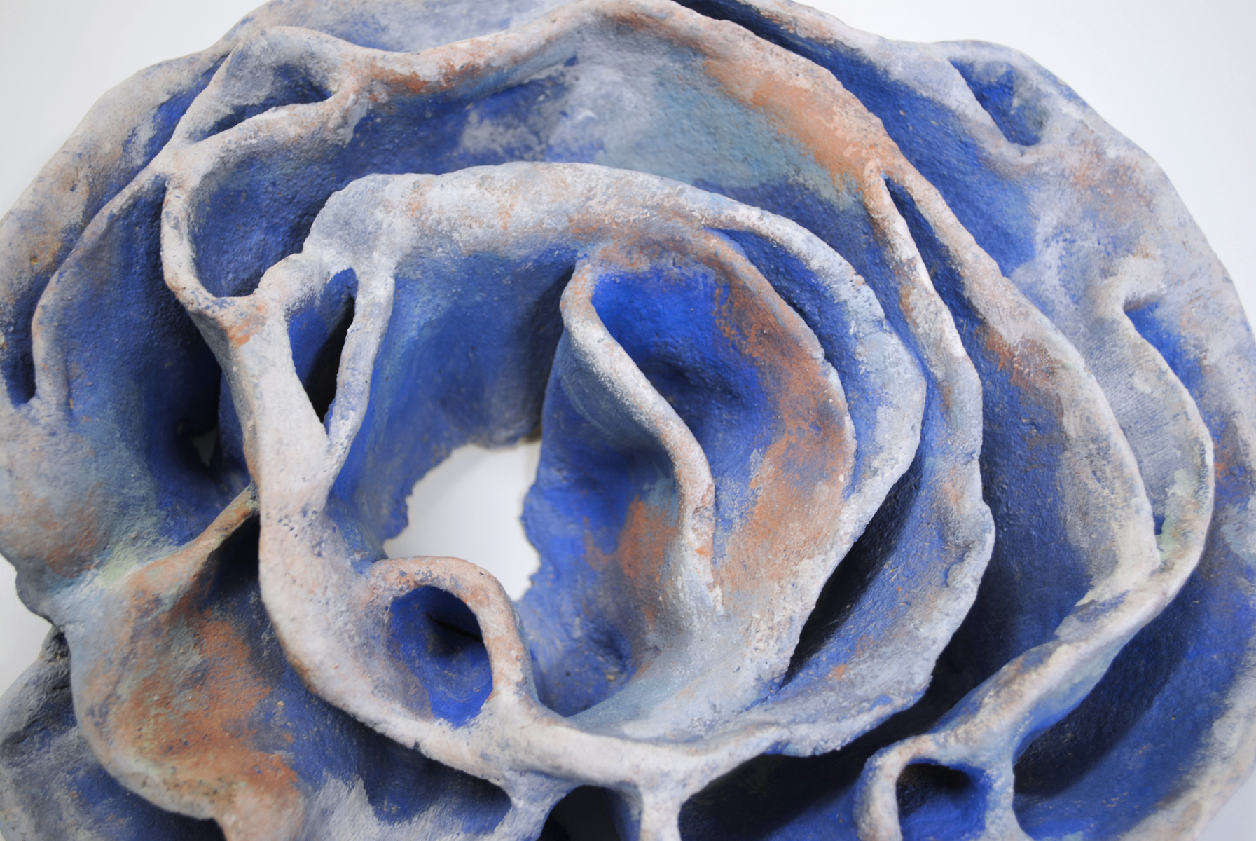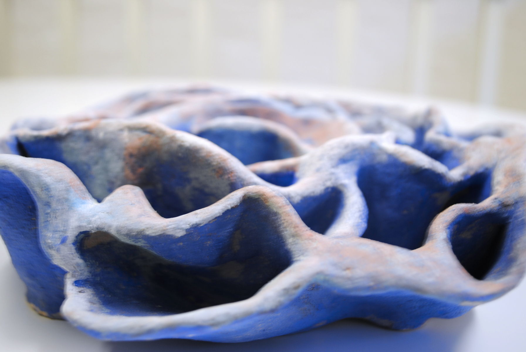 Stoneware, acrylic paint, approximate height 13cm and width 24cm.