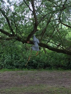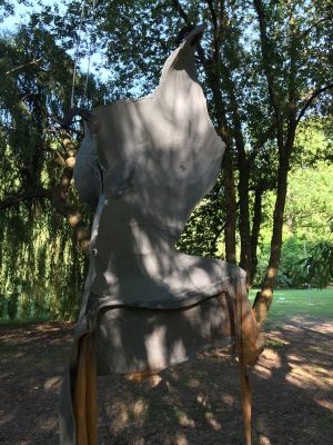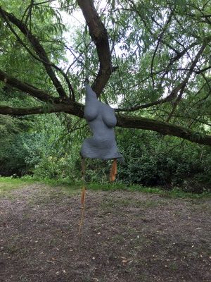 Painted plaster cast and fabric, approximate height 48cm and width 35cm.